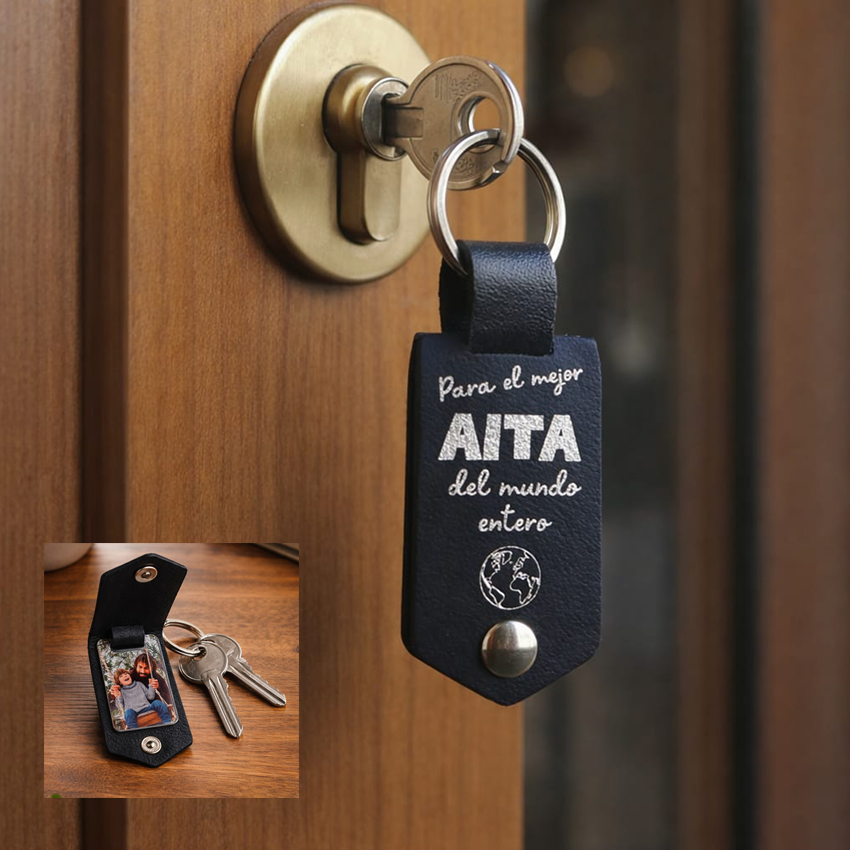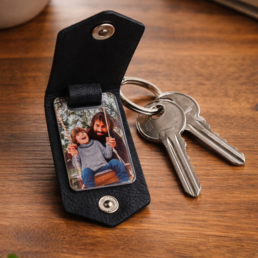 Sorprende a papá con un regalo lleno de significado. Este llavero personalizado incluye una o dos fotos impresas en material rígido de alta calidad, resistente y duradero, para que ese recuerdo especial le acompañe cada día. Su diseño con acabado tipo cuero y cierre metálico lo convierte en un detalle elegante y práctico.